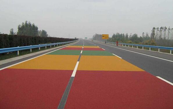 车辆行驶在彩色防滑路面上,能感觉到阻力增大,就像在减速带上轧制一样。彩色防滑路面的铺设可以从视觉感觉上警告驾驶员,前方进入危险道路,降低速度。同时增加路面摩擦系数,减少路面滑动现象,有效缩短车辆制动距离,提高行驶安全性。