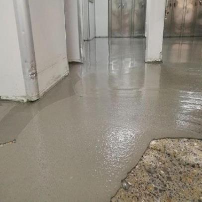 (1)用喷壶将地面基层均匀洒水一遍