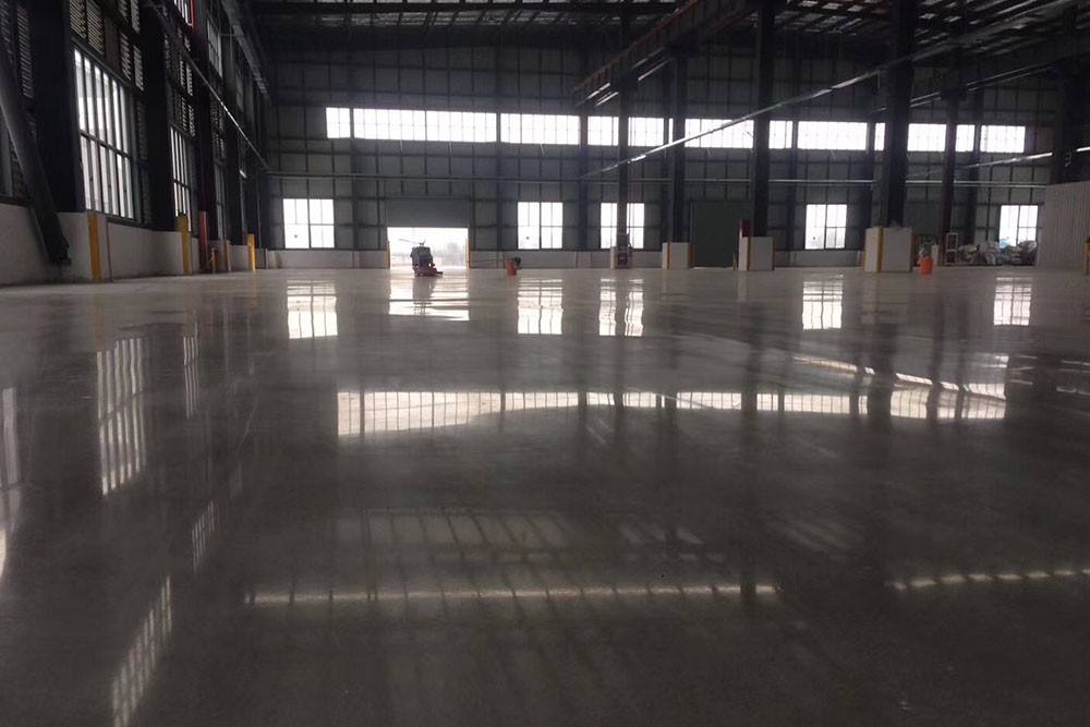 5.在完工24小时后,用软毛抛光垫在地坪表面上抛光,需用树脂磨片对基面进行多次抛光处理。使用时间越长,光泽度越好。