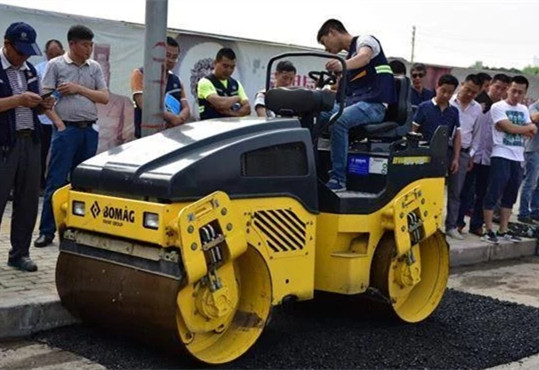 6)坑槽材料的压实。压实方法英语修补坑槽的大小相匹配。中小型振动夯板或静碾压路机可用于小型坑槽的修补。压实机械的操作人员应确保压实力直接作用在摊铺后的沥青混合料上面,为使坑槽边缘的混合料压密实,应从坑槽四周向客观草中间压实。