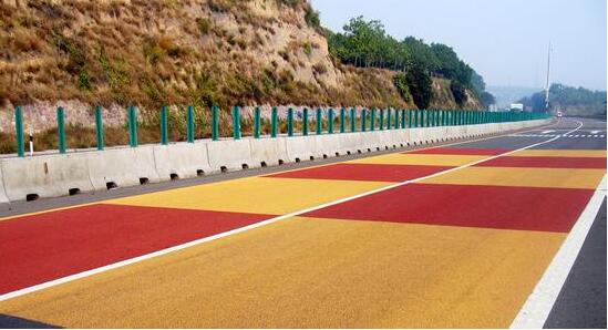 在铺设防滑彩色路面时,可以选择不同的彩色集料,以得到不同颜色的道路。在现代交通管理中,较重要的交通理念是让管理对象走自己的路。这有助于合理疏浚交通,限度地利用道路资源,同时也大大提高了交通安全。