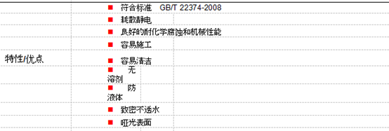 我们固迪佳公司是专注一防静电环氧地坪的公司,使用的材料是国际品牌西卡,是四川一家西卡代理商,西卡防静电地坪的特征可以看下面这张图。