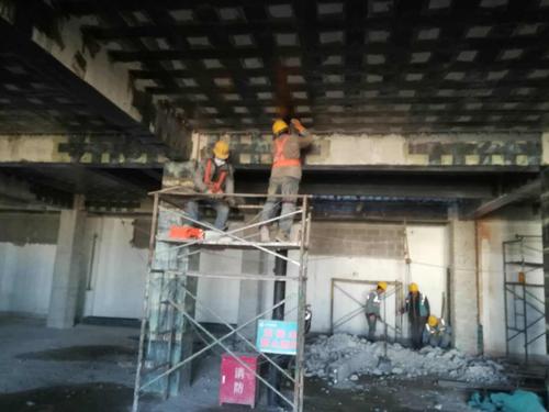 4、施工的时候现在需要加固的建筑表面涂上粘胶剂,贴上碳纤维布后还要再涂上一层,如果需要粘贴多层碳纤维布,要等第一层干了以后再进行下面的步骤。